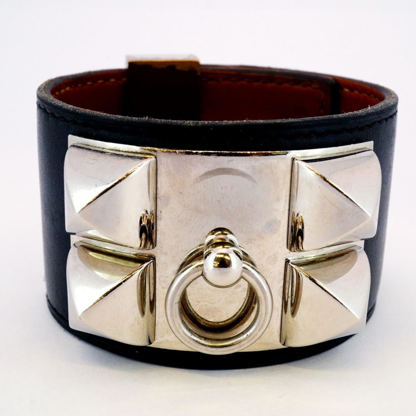 エルメス Hermes バングル コリエドシアン メタル レザー シルバー ブラックレディース