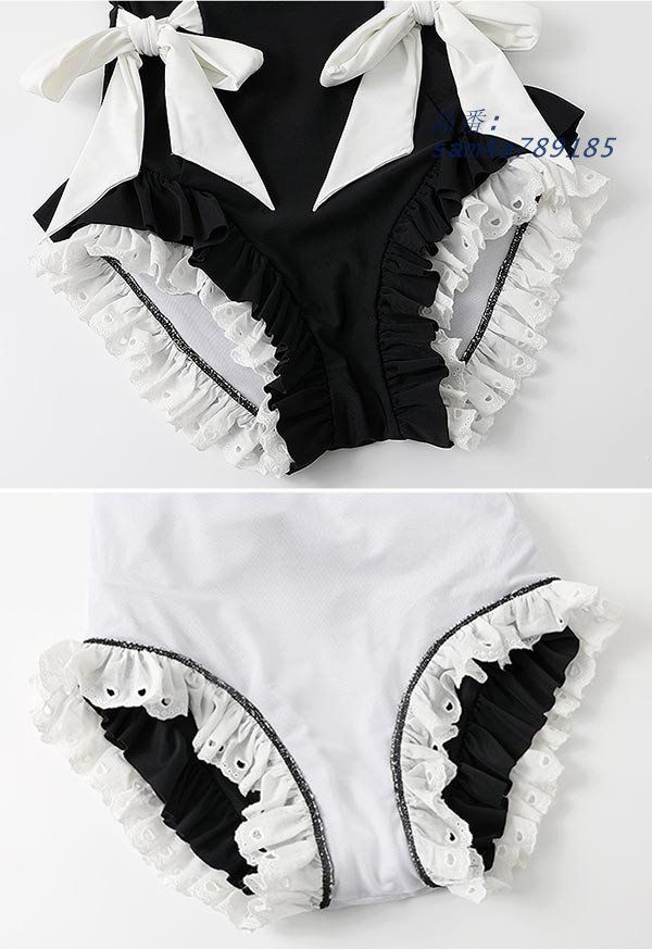 レディース 水着 レオタード水着 パッド付 かわいい メイド リボン フリル 小胸 夏 海 ビーチ プール 温泉旅行 S M L XL T2W9