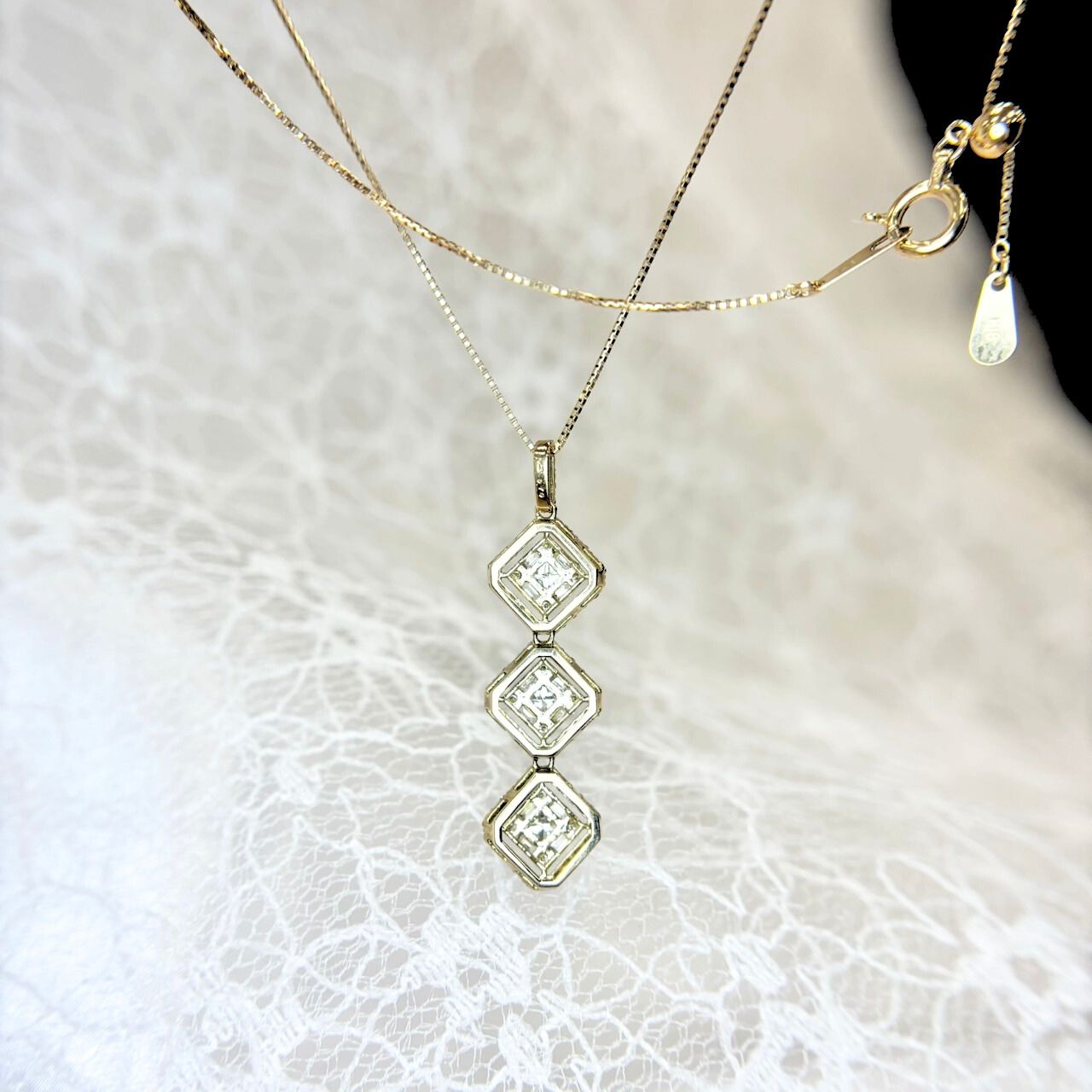 デコルテを美しく彩るダイヤモンドネックレス。