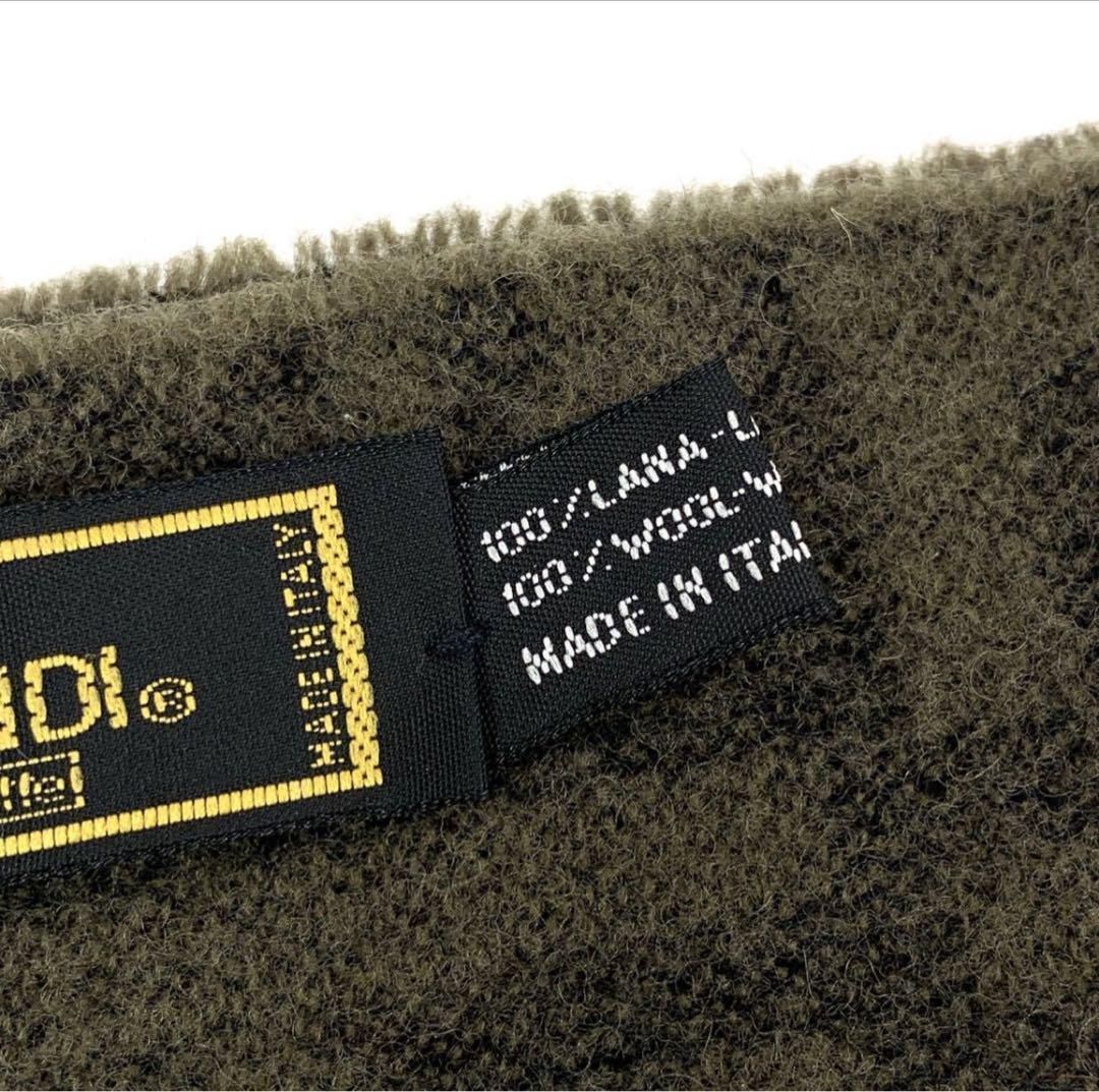 落ち着いたカーキの色にフェンディのロゴがプリントされたマフラーです✨