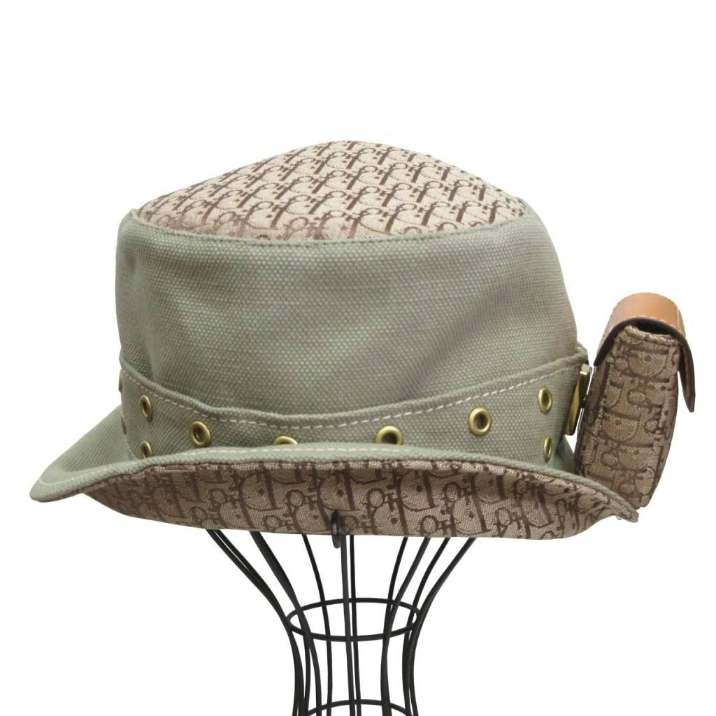 クリスチャンディオール Christian Dior 2002 SS ジョンガリアーノ期 トロッター バケットハット リムーバブルポーチ コットンリネン サファリハット カーキ 58 MNK 2