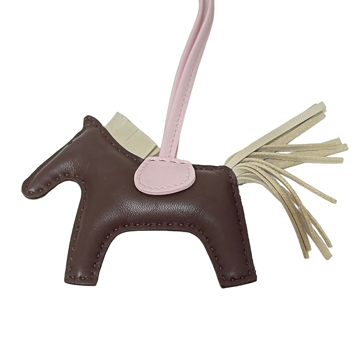 HERMES エルメス キーホルダー チャーム ロデオチャームPM ダークブラウン×ライトピンク×アイボリー