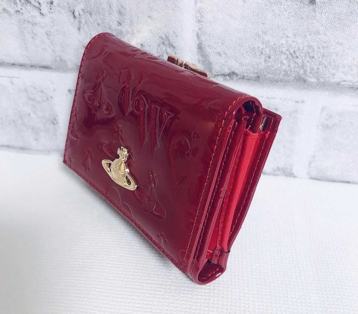 ️ショッパー付き ヴィヴィアン ウエストウッド 三つ折り財布 エナメル赤 ユニセックス