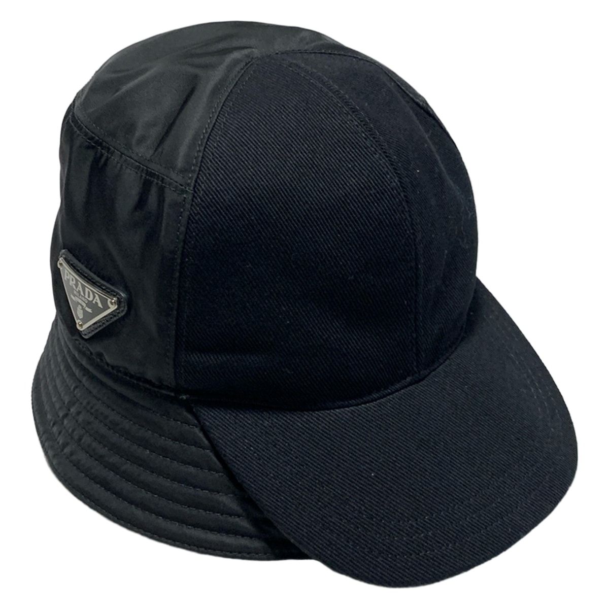 PRADA プラダ ハット M バイザーバケットハット 2 HC 281 黒 RE-NYLON コットン
