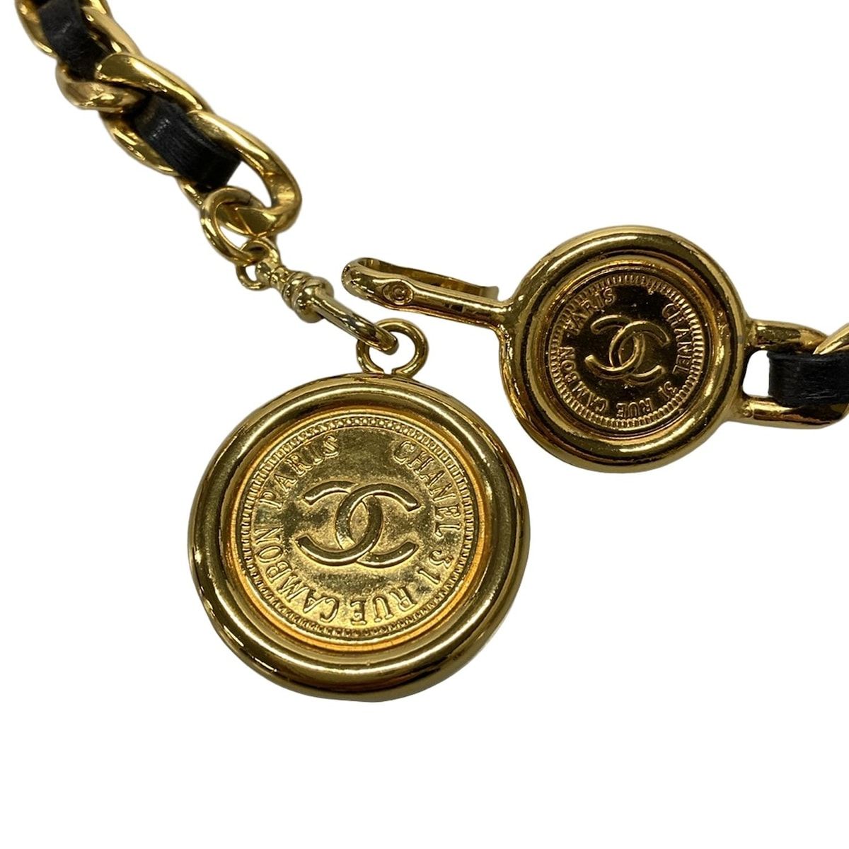 CHANEL シャネル ベルト - ゴールド×黒 ココマーク チェーンベルト レザー