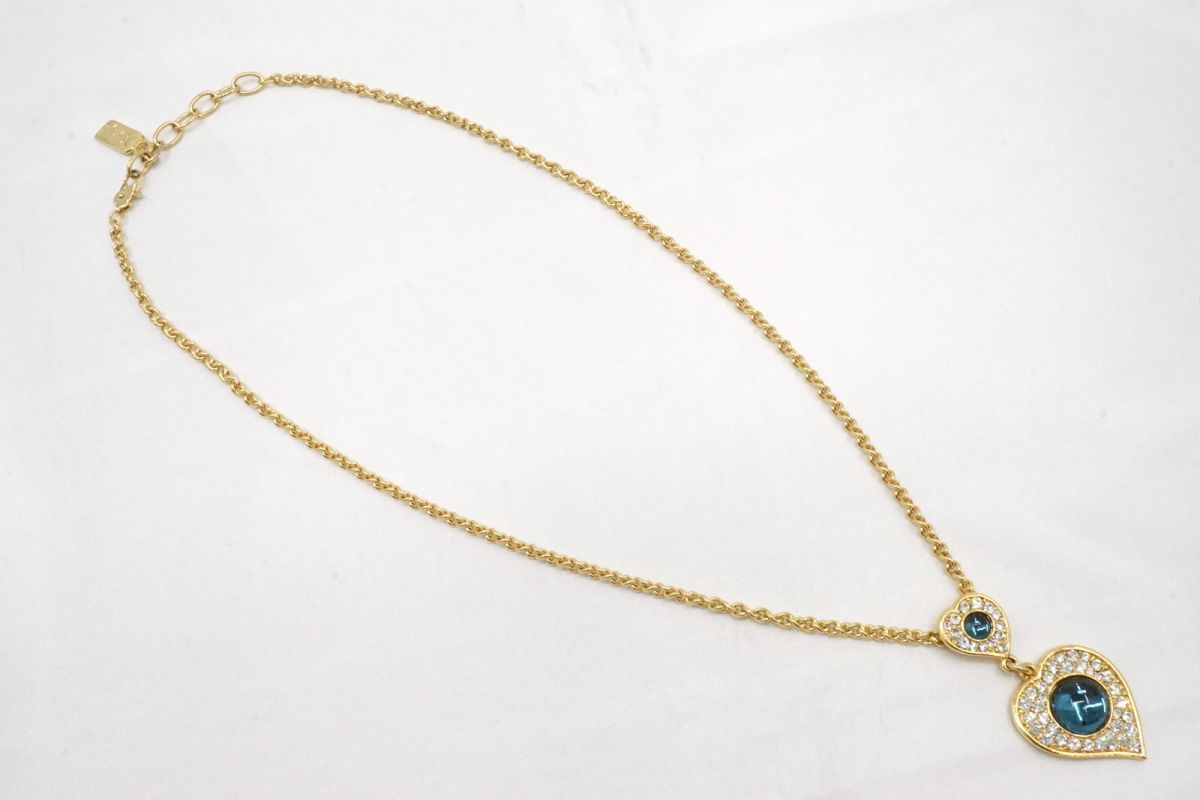 イヴ サンローラン ヴィンテージ ネックレス ペンダント ハート ストーン ラインストーン 金 ゴールド Yves Saint Laurent 3905 j