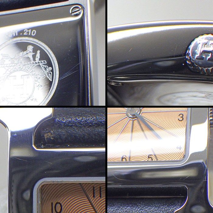 エルメス HERMES 腕時計 Hウォッチ HH 1.210 スクエア コーラル ピンク ギョーシェ文字盤 SS ブラック ヴォー エプソン レザーベルト クオーツアナログ 箱 保付き