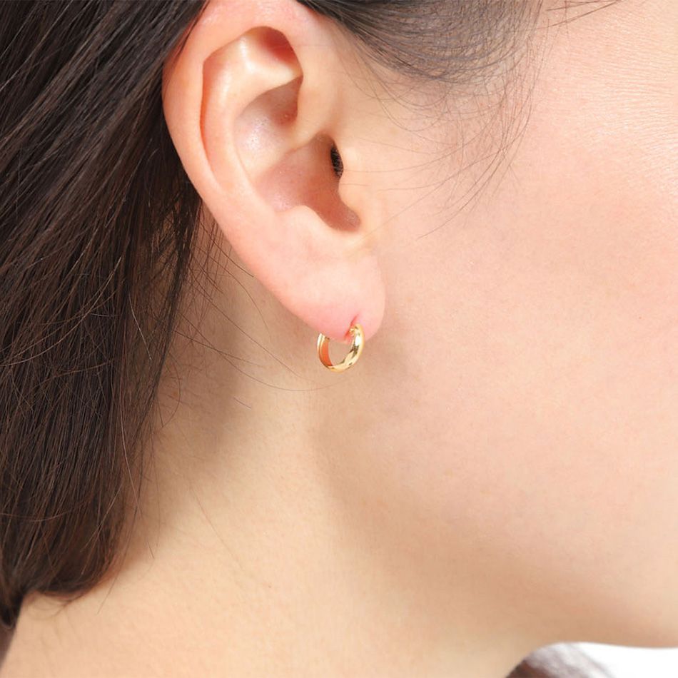 フープピアス ピアス 10金 K 10 ゴールド 月型 甲丸 キャッチレス ワンタッチ ムーンピアス 小さい 小ぶり リングピアス 大人 おしゃれ シンプル ニッケルフリー 普段使い 3 mm×10 mm 結婚式 冠婚葬祭 ギフト プレゼント