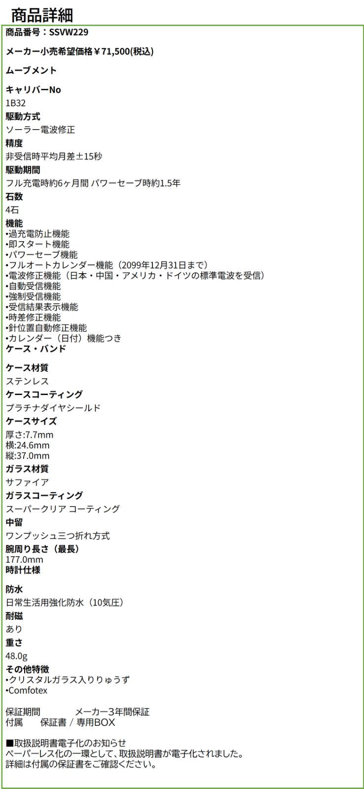 セイコーSEIKOルキアLUKIAGrowSSVW 229ソーラー電波修正プラチナダイヤシールドレディス