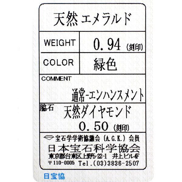 Pt 900 エメラルド ダイヤモンド ペンダントトップ 0.94 ct D 0.50