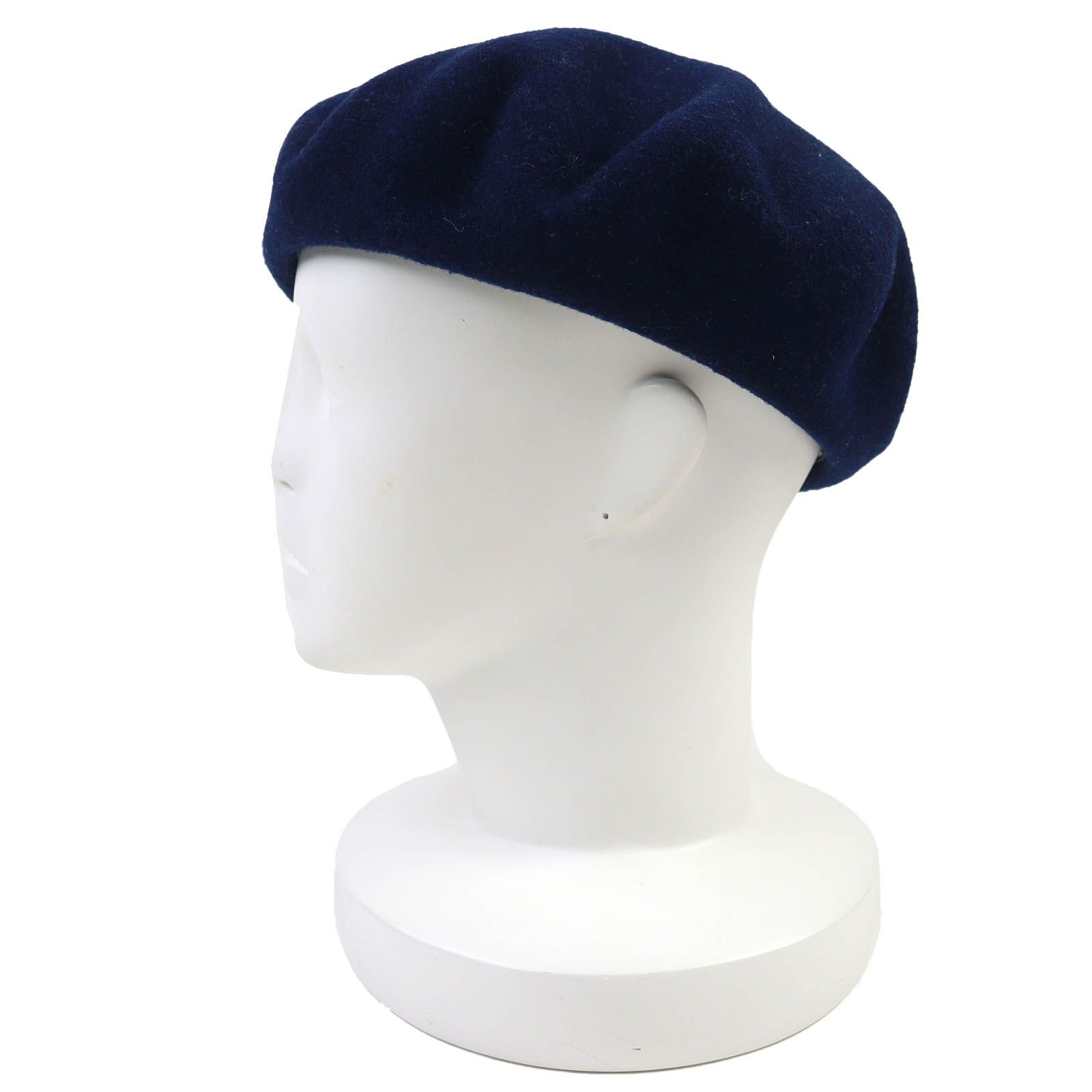 △HERMES エルメス フェリシティ ウール100% ロゴ金具 内側レザー使い ベレー帽 帽子 ネイビー 58 フランス製 レディース