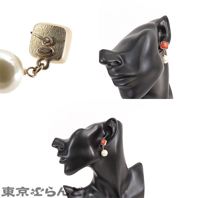 シャネル CHANEL ピアス ゴールドxオレンジ メタル フェイクパール ココマーク スクエア A 14 K GP レディース