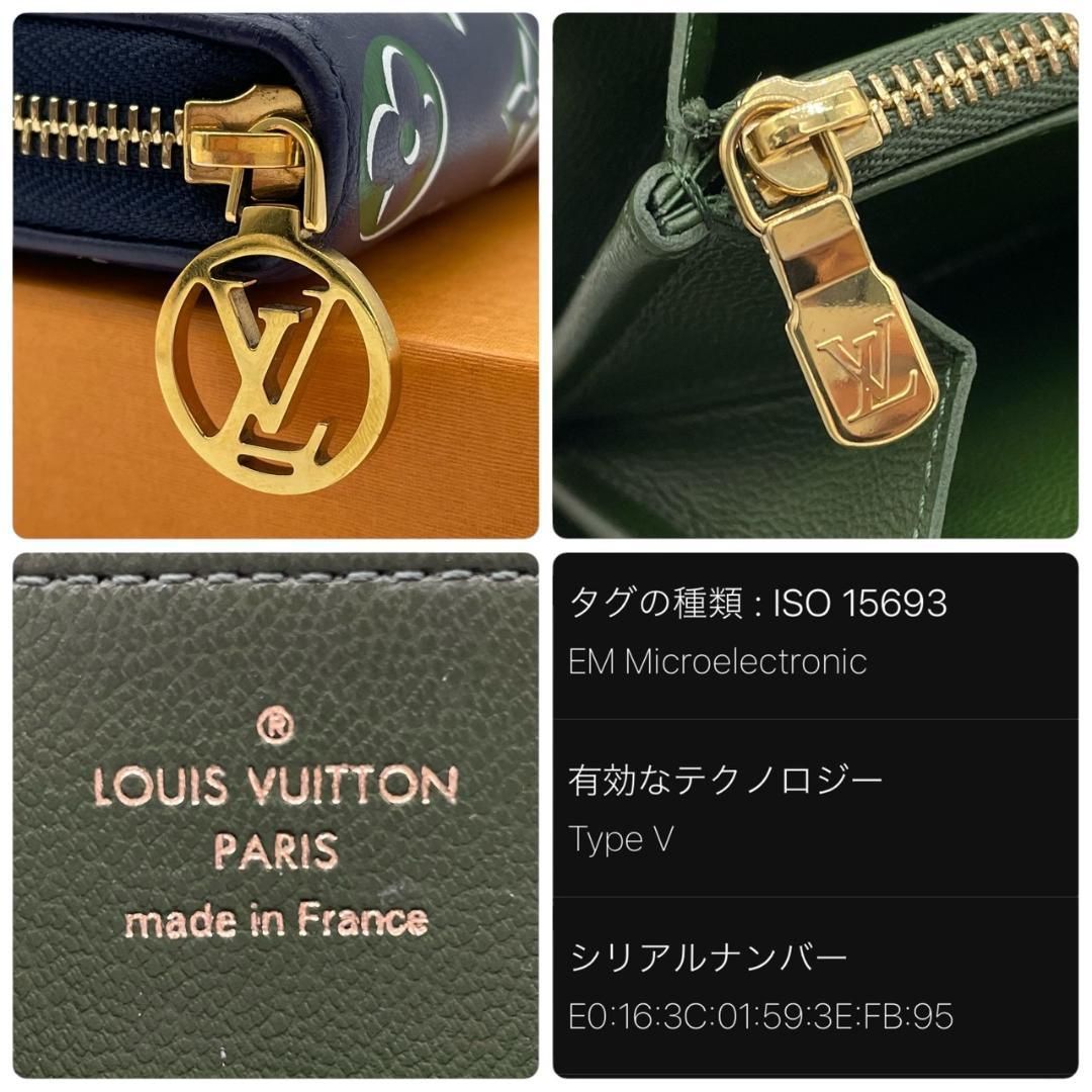 ルイヴィトン モノグラム エンボス ジッピーウォレット 長財布 ネイビー×グリーン クッサン