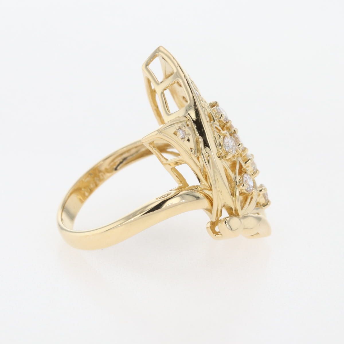 バタフライモチーフ デザインリング YG イエローゴールド 指輪 メレダイヤ 蝶 リング 11号 K 18 ダイヤモンド レディース