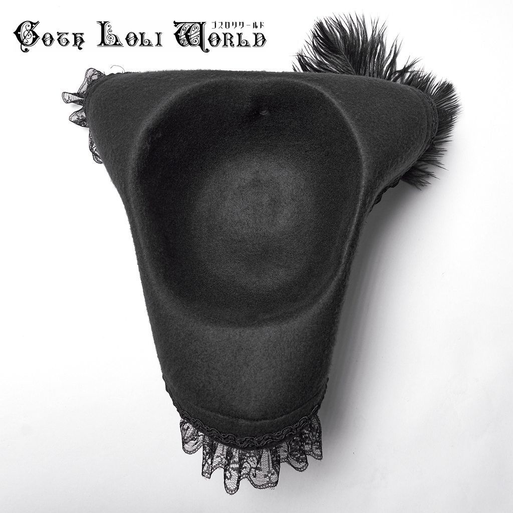ゴスロリワールド WS-820 MZ-BK 地雷系 パンク ロック ファッション 羽根付 三角帽子 海賊 帽子 ハット 化粧 ゴシック ゴスロリ ビジュアル系 ヴィジュアル系