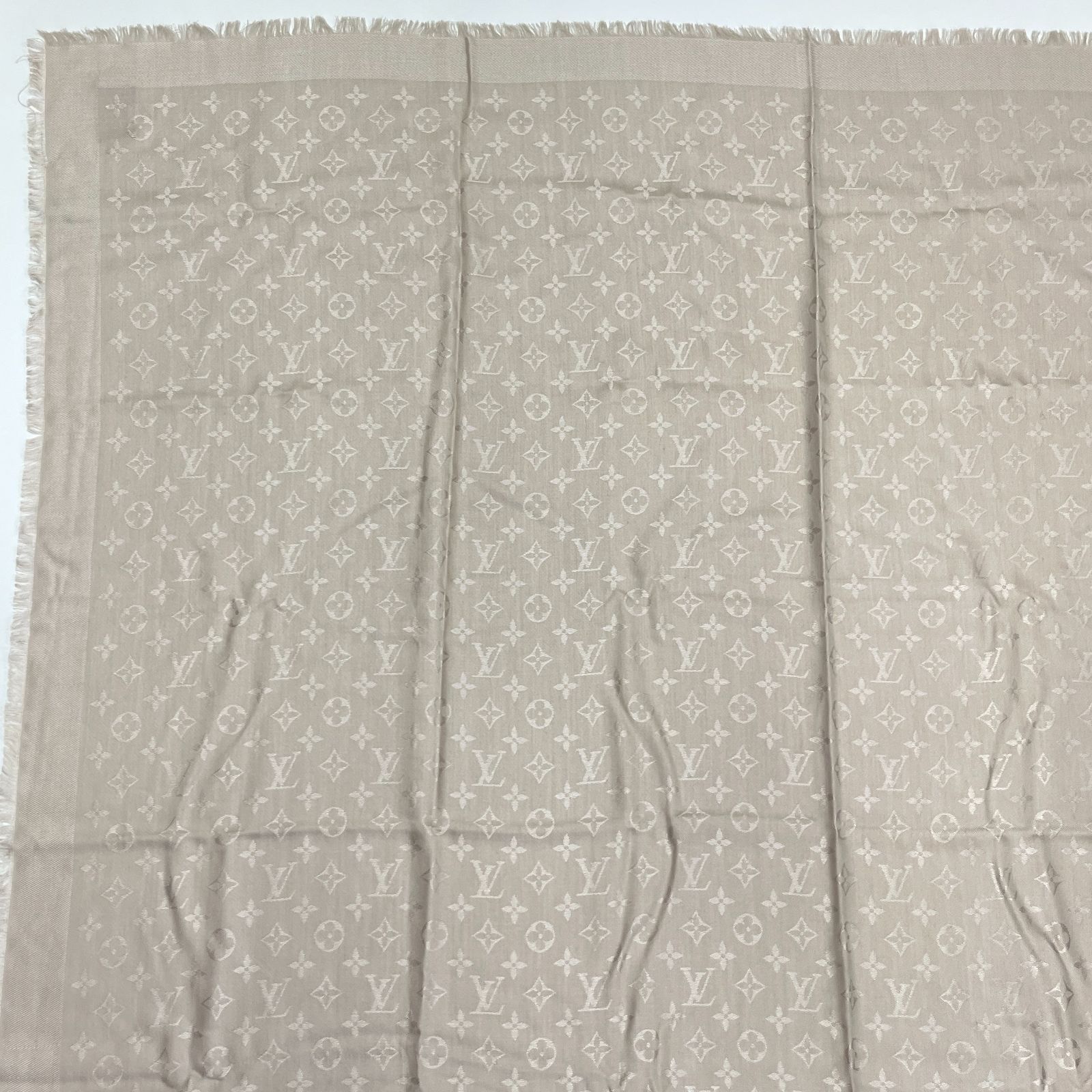 LOUIS VUITTON ルイヴィトン ショール モノグラム シルク ウール M 71336 IS 0136 ベージュ ヴィンテージ レディース HIBUOCHI VINTAGE