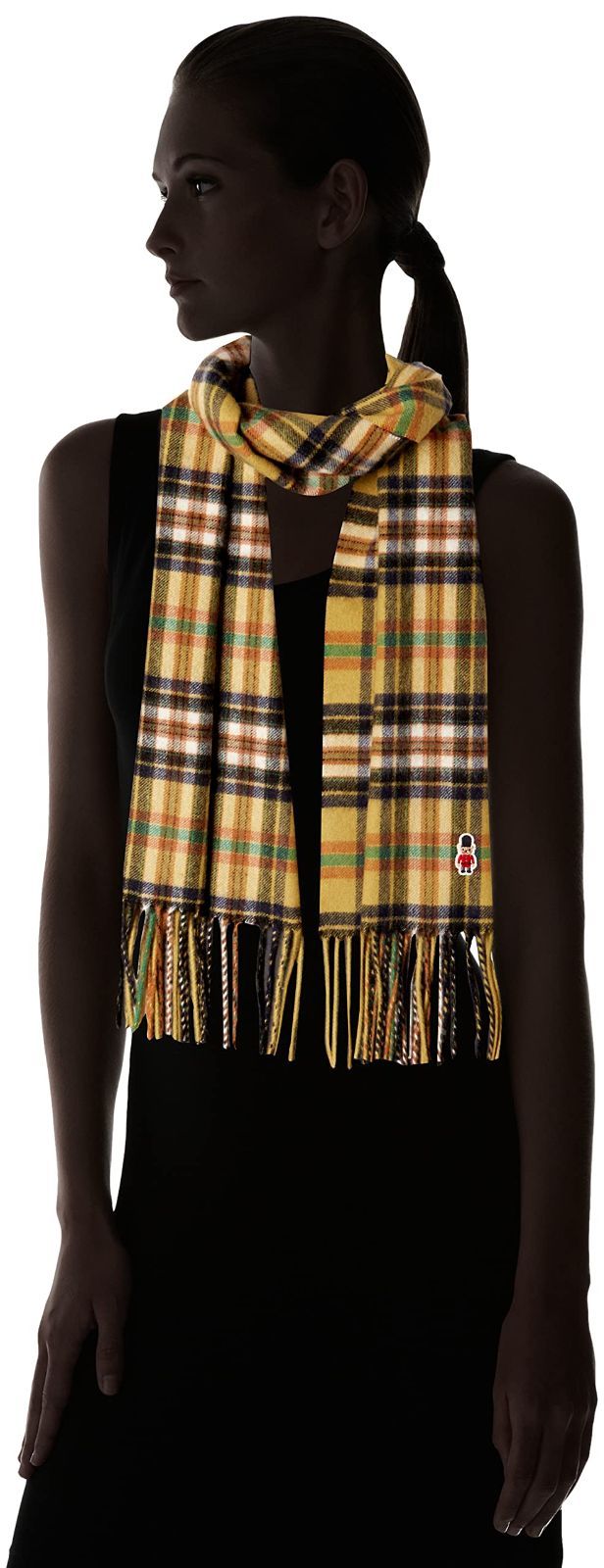 レディース プレゼント BuckinghamBearワッペン付マフラー 波付タータンチェック ギフト カシミヤ 24-431-44134-52-00 MOONBAT ムーンバット マフラー イエロー フィロソフィ 約30㎝×180㎝