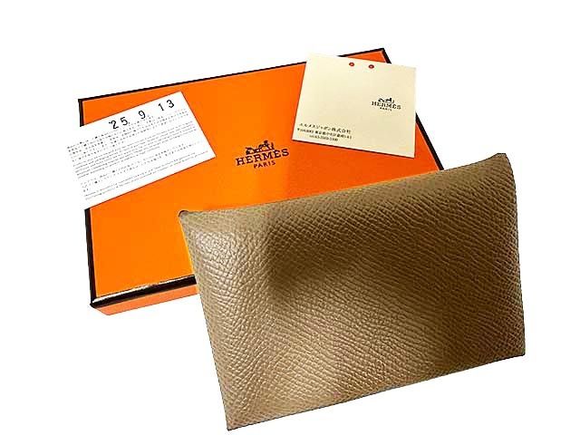 HERMES エルメス 小物 CALVI カルヴィ カードケース エプソン エトゥープ W刻印 物_S 26_セルモアから _s-0772-r 26