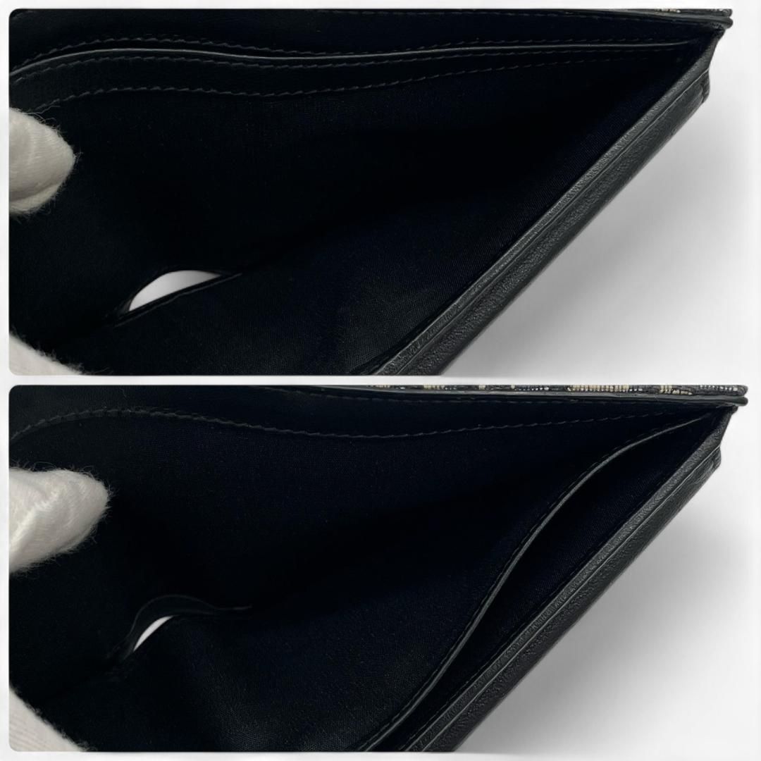 Y ディオール Christian Dior コンパクトウォレット 二つ折り財布 オブリーク ジャカード ベージュ×ブラック