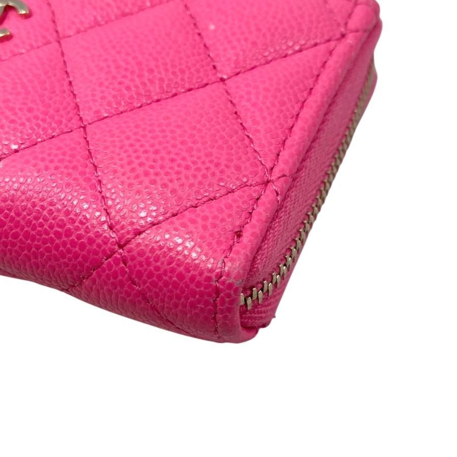 E 4611 シャネル カードケース コインケース クラシック ジップ AP 3179 マトラッセ キャビアスキン ココマーク ピンク ゴールド金具 CHANEL