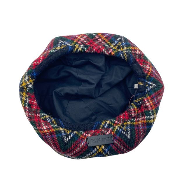 ミュウミュウ MIU タータンチェック柄ベレー帽 帽子 ハット 黒 ブラック マルチ ウール100% M レディース 5 E 051