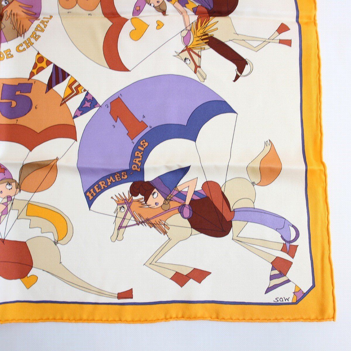 HERMES エルメス カレ 70 スカーフ 馬への愛 シルク100% イエロー系