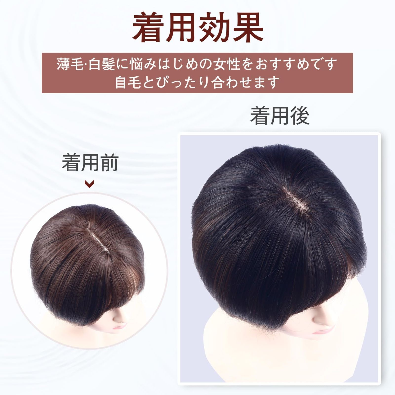 YOYO 部分ウィッグ 人毛100% リアル人工皮膚 総手植え 分け目自由 医療用 超自然 女性 ヘアピース 抜け毛 増毛 ボリュームアップ 前髪あり 通気性 ショート ネットサイズ横5cm縦8cm (25cm 栗色)