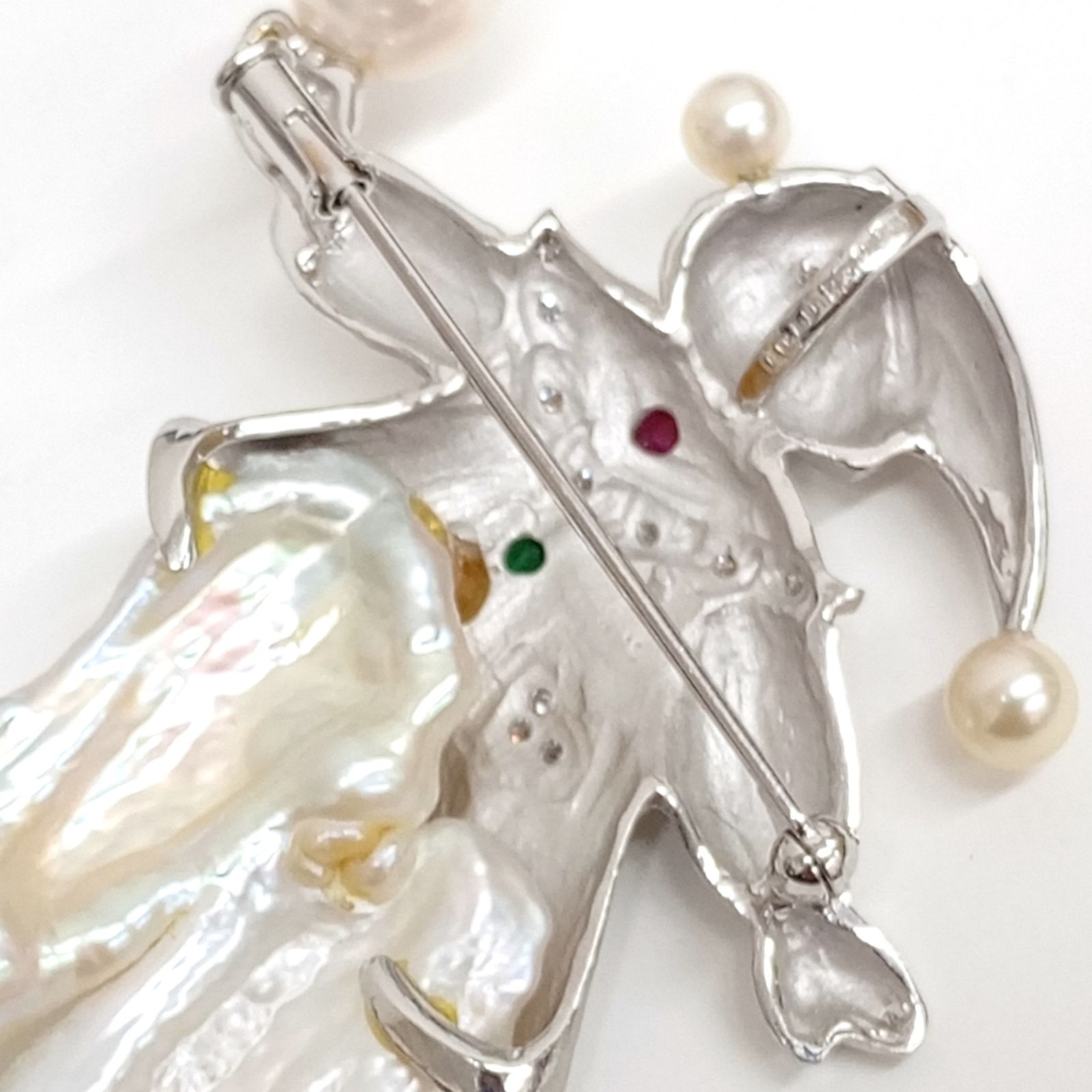 K 18 WG メレD 0.1 ct ルビー エメラルド0.25 ct付 バロックパール ブローチ トップ 16.63 g デザイナーズ ジュエリー ピエロ サーカス JA-25058