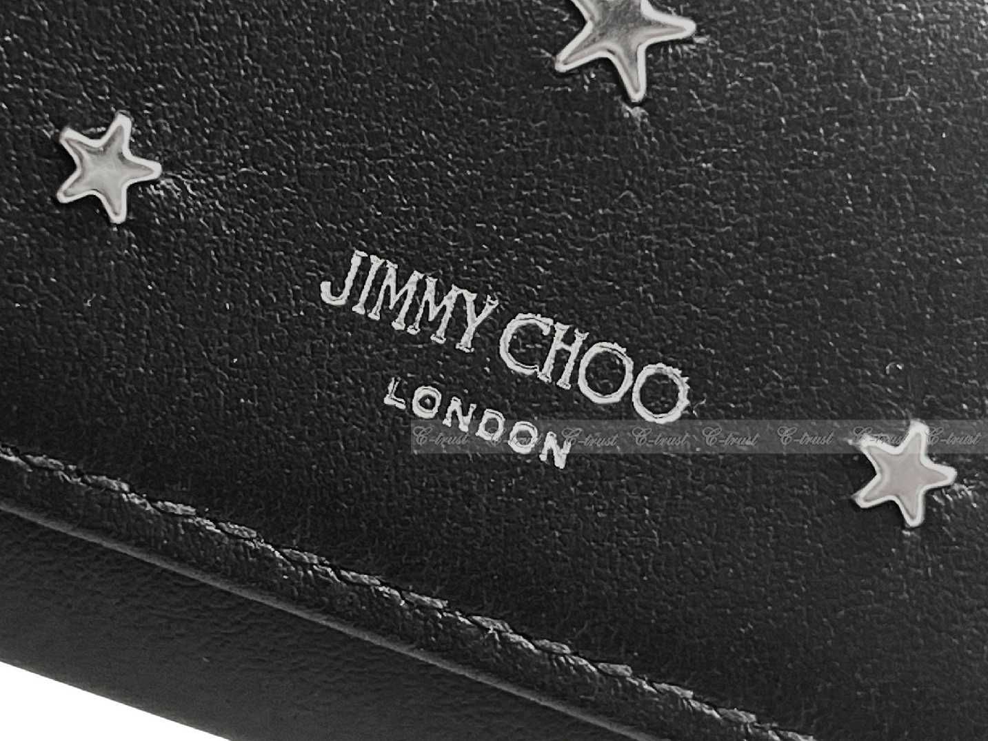 JIMMY CHOO ジミーチュウ キーケース NEPTUNE キーリング スタッズ スムース レザー 3つ折り 6連 スター ロゴ ブラック L 924