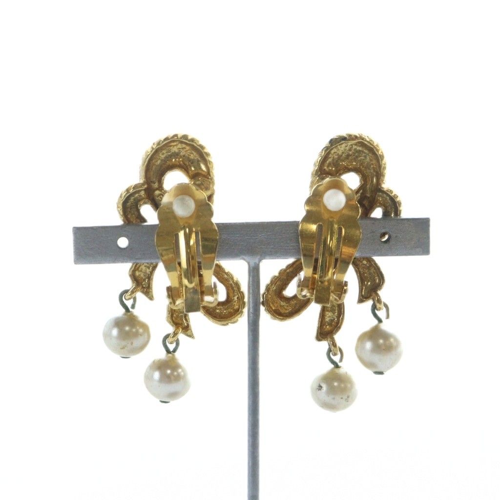【商品名】ソニアリキエル SONIA RYKIEL ヴィンテージ イヤリング アクセサリー 両耳用 クリップ式 リボンモチーフ フェイクパール ゴールドカラー 金色 ■GY17 /MQ