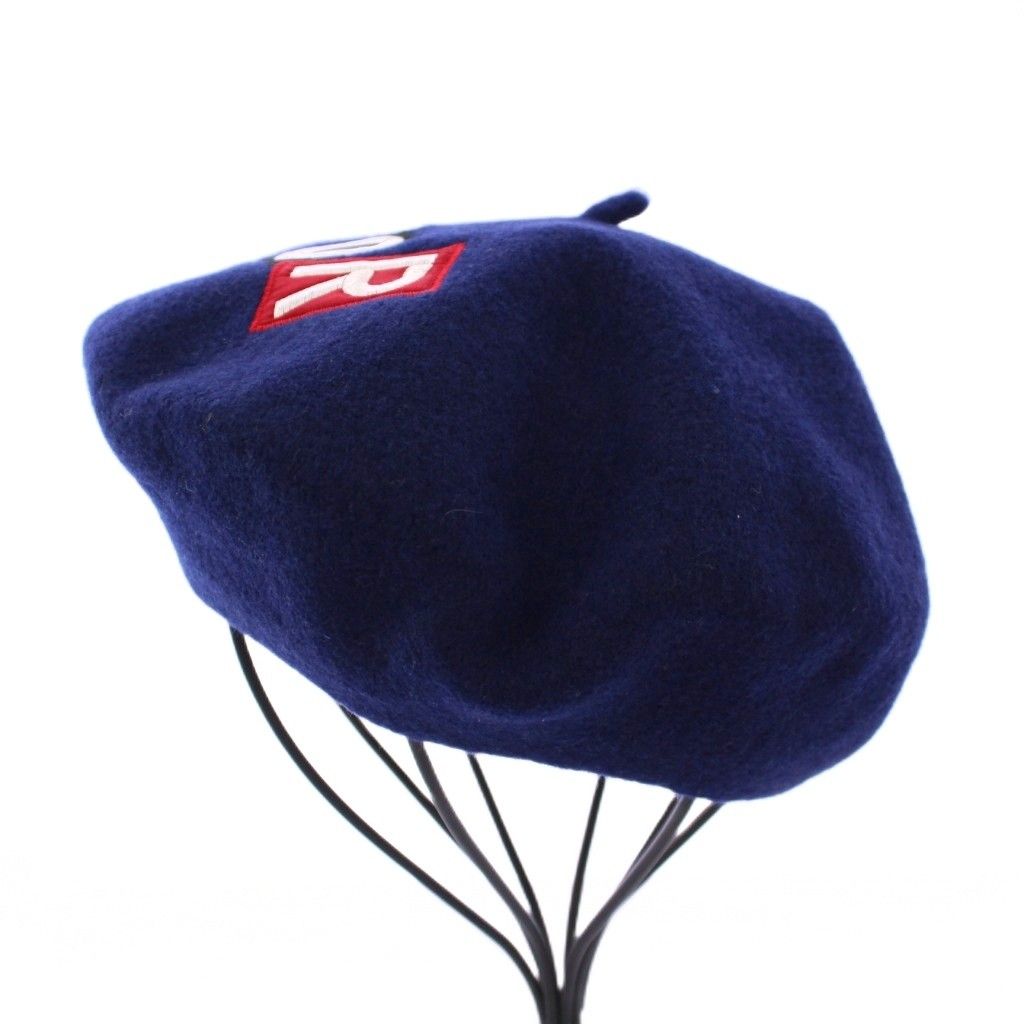 クリスチャンディオール Christian Dior ベレー帽 帽子 ロゴ 刺繍 ウール 紺 ネイビー BB OH