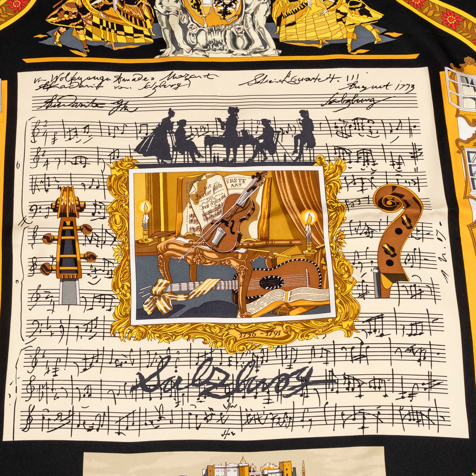 HERMES エルメススカーフ黒 オレンジ ツイルシルクA