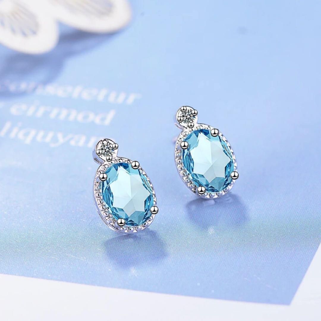 ✳️澄んだ海のようなアクアブルーストーンが印象的なスタッドピアス