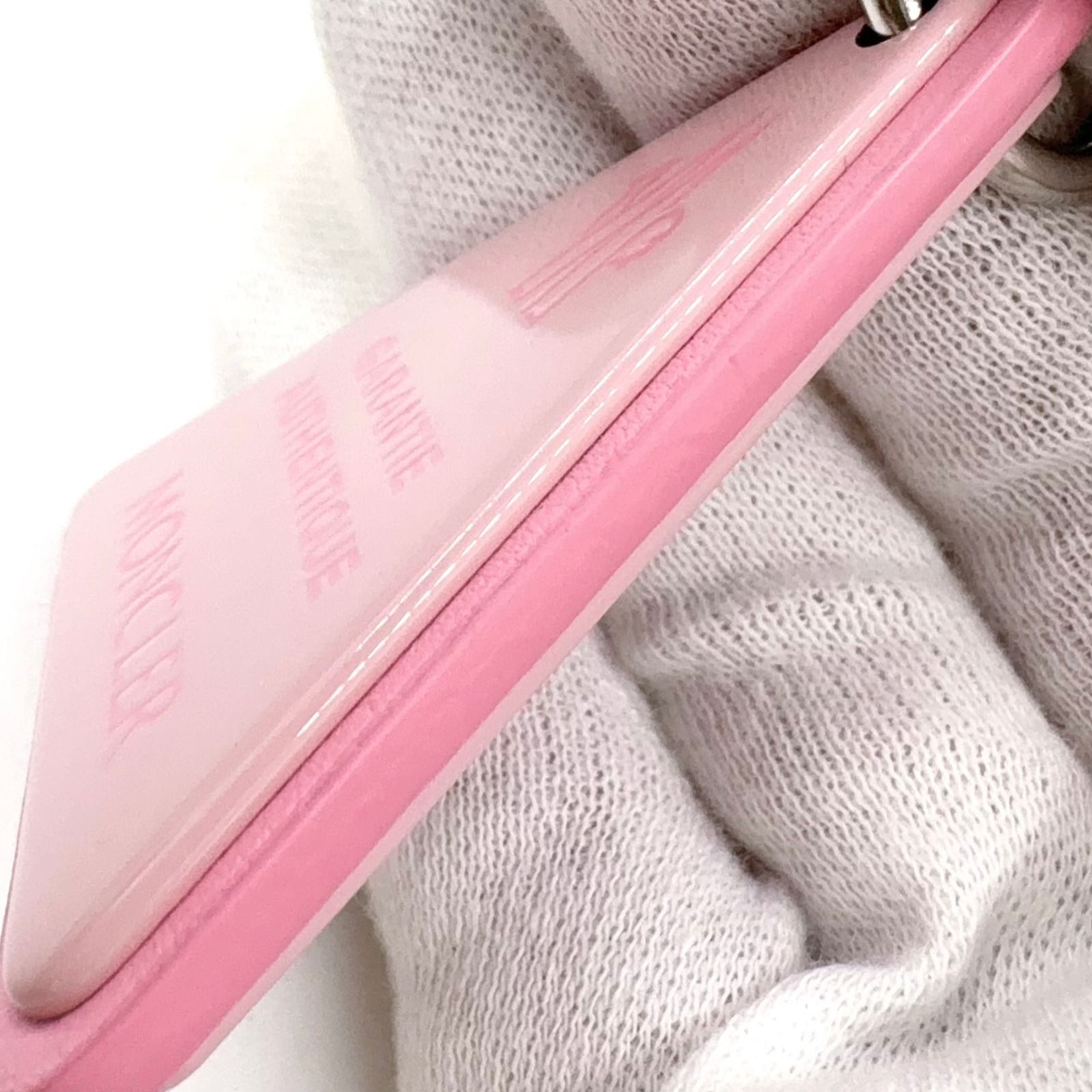【商品名】MONCLER キーリング レザー×メタル ピンク チャーム シルバー