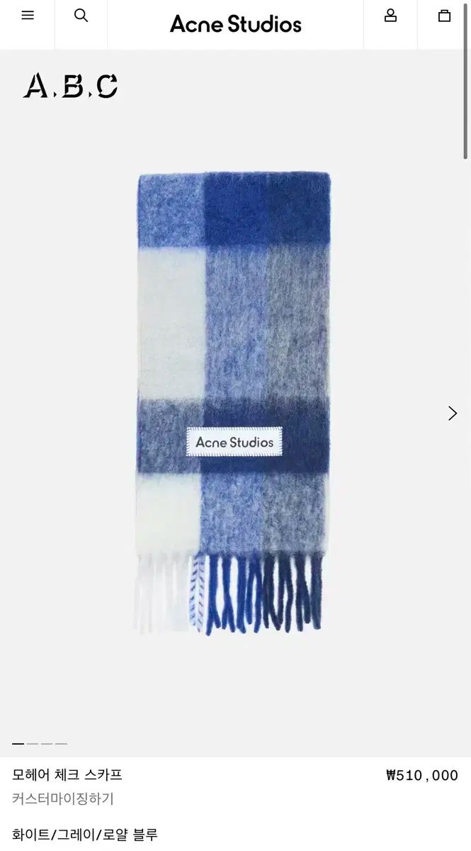Acne Studios アクネストゥディオズ 白 グレー ロイヤルブルー モヘア CHECK マフラー 변우석