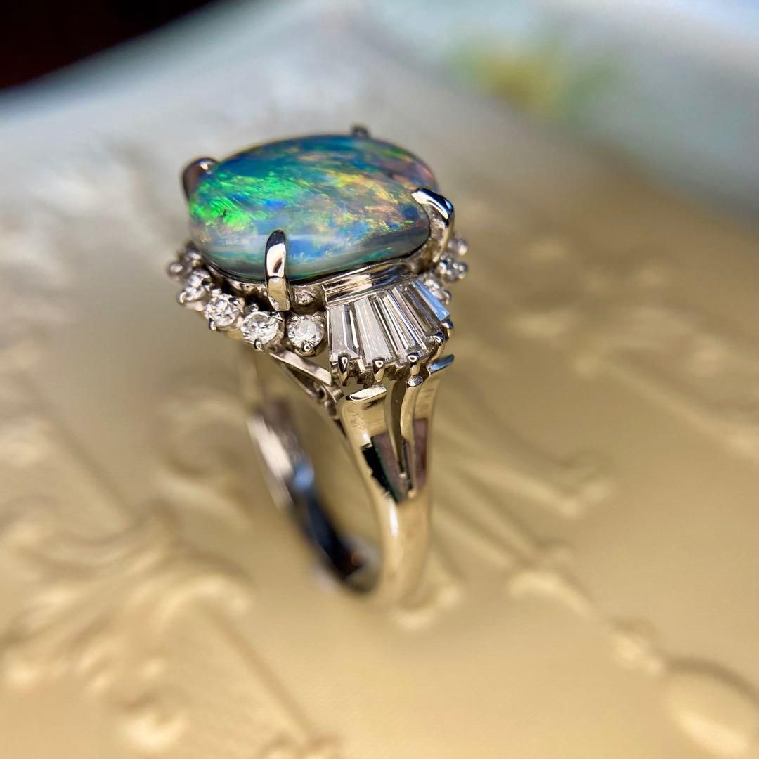 pm 900 天然ブラックオパール 3.38 ct × ダイヤモンド0.68 リング 指輪 昭和レトロ|ソーティング付き