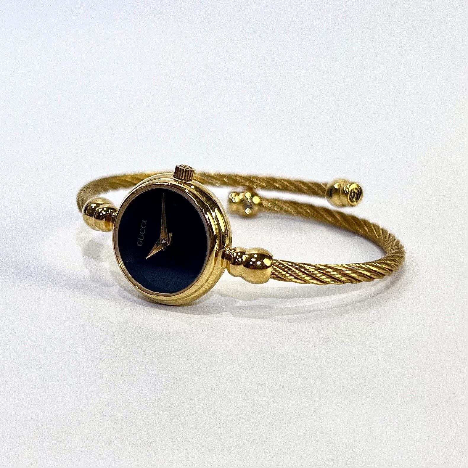 GUCCI グッチ レディース バングル クオーツ 黒文字盤 腕時計 2700.2.L ゴールド メッキ 20 mm 17 cm 箱 ファション小物 aua