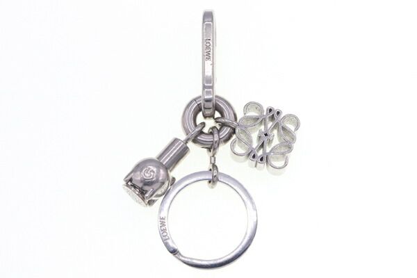 ロエベキーリングアナグラムC554231X33シルバーメタル新品キーホルダーバッグチャームピッグダイス付バッグアクセサリーレディースLOEWE
