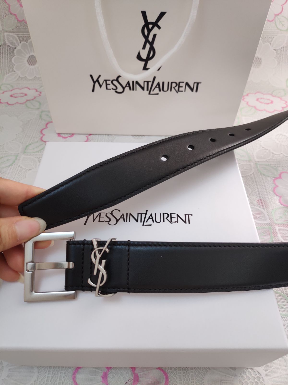 Saint Laurent サンローラン ベルト レザーベルト YSLバックル付き カジュアルベルト 男女兼用✜