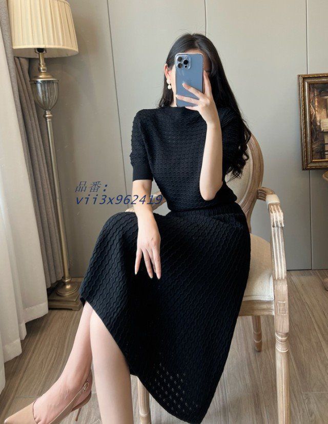 サマーニット ニット セットアップ レディース きれいめ 半袖ニット 五分袖 ミモレ丈 スカート ロング Aライン シンプル 大きいサイズ 黒 白 春 夏 通勤服 オフィス お呼ばれ エレガント フェミニン 上品 20代 30代 40代 春服 夏服