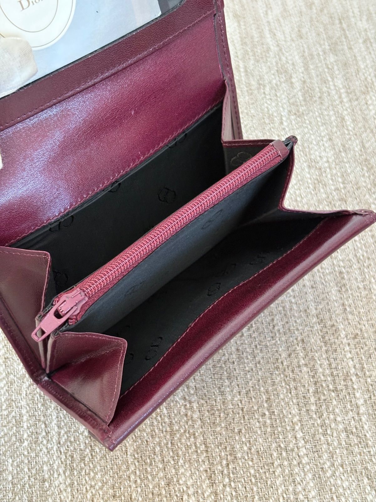 【箱付き】【美品】クリスチャンディオール 二つ折り財布 短財布 小銭入れ レザー 革 コインケース ヴィンテージ ボルドー パープル バーガンディ Christian Dior Vintage Short Wallet Coincase 22281