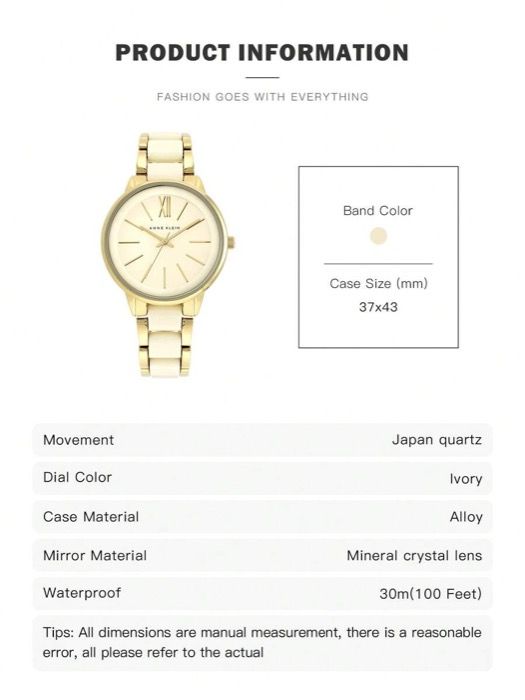 腕時計 レディース クォーツ 女性用樹脂クォーツブレスレットウォッチ ゴールドトーンケース 女性用防水アナログウォッチ レディースアイボリーダイヤルラウンドウォッチ 調節 なブレスレット付き