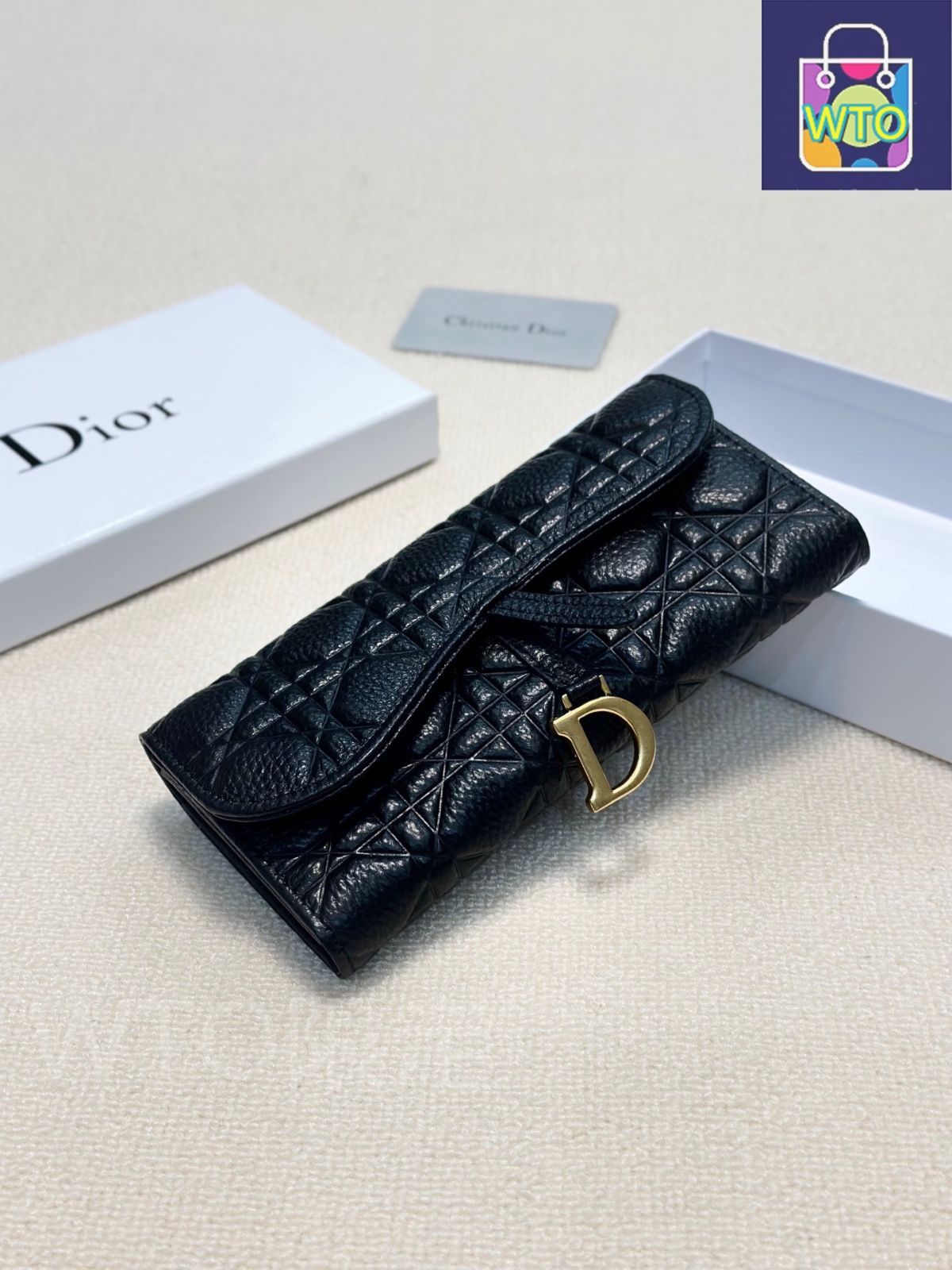 今日 Dior レディースウォレット ブラック エンボス加工レザー 実用的でスタイリッシュなデザイン