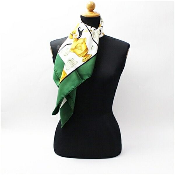 ゲラン シルク スカーフ グリーン アイボリー 香水瓶柄