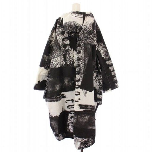 センソユニコ Senso unico m mefu 芽風 レインコート ナイロン アウター ロング丈 フード 総柄 40 黒 ブラック 白 ホワイト BB H