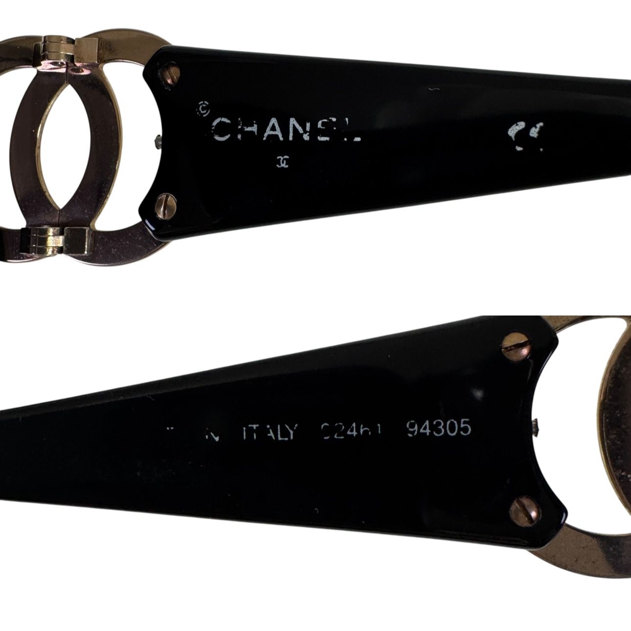 フレームに使用に伴うスレ傷、歪み、両サイドのCCロゴに変色とスレ、ブランド名とモデル番号が薄くなっております。