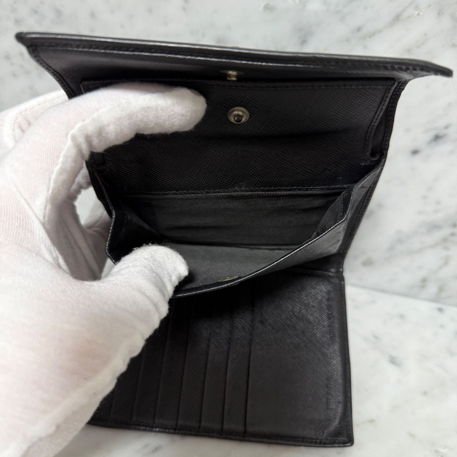 PRADA プラダ 三つ折財布 ブラック 黒 サフィアーノ 本革 レザー トライアングル