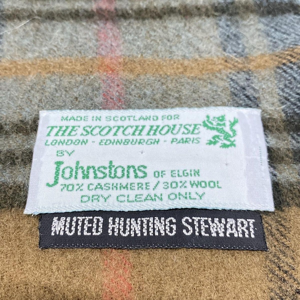 johnstons of elgin ジョンストンズ マフラー - ブラウン×ライトブルー×マルチ チェック柄 THE SCOTCH HOUSEコラボ ウール カシミヤ