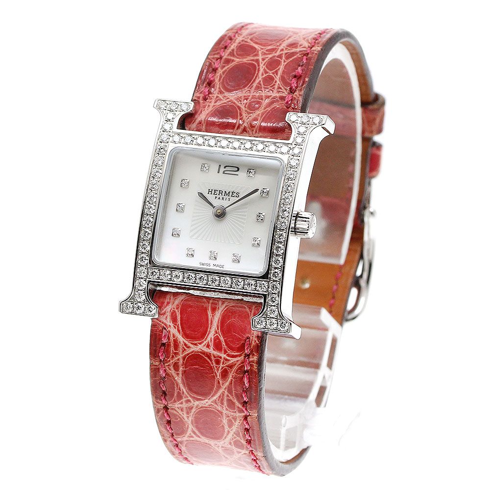 エルメス HERMES HH 1.230 Hウォッチ ダイヤベゼル 11 P クォーツ レディース 内箱 保証書付き_916989