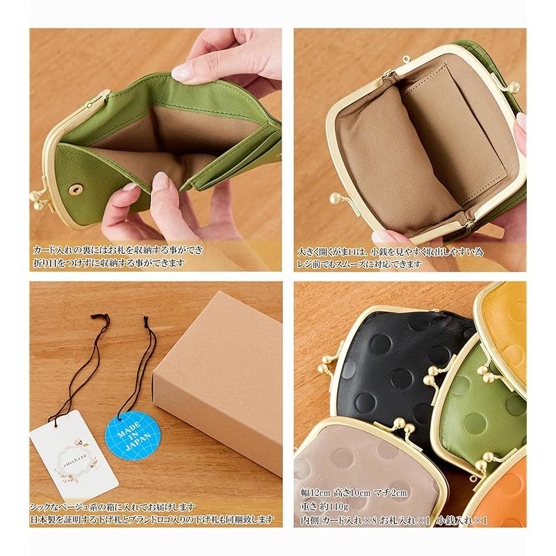 【サイズ・仕様】・幅12cm 高さ10cm マチ2cm ・重さ 約110g ・内側 カード入れ×8 お札入れ×1 小銭入れ×1 ・生産国 日本